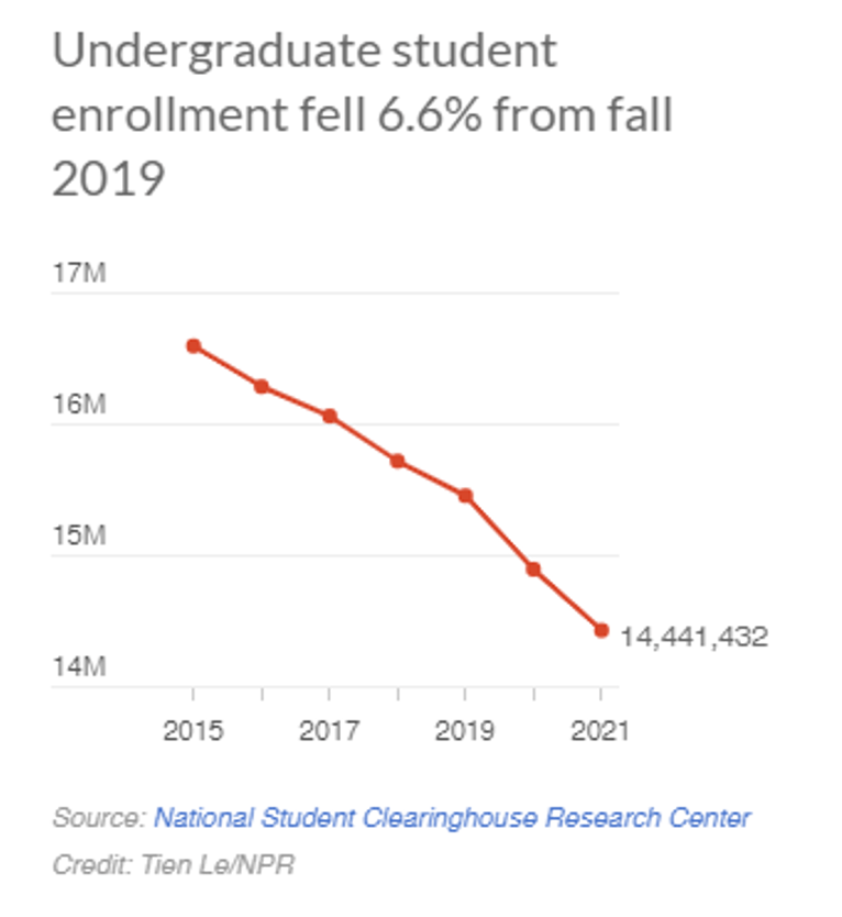 (Younger generations enrollment for educations is also cliff diving – that could also be because it’s too expensive. So few people studying and fewer young people wanting to work compared to their elder generations)