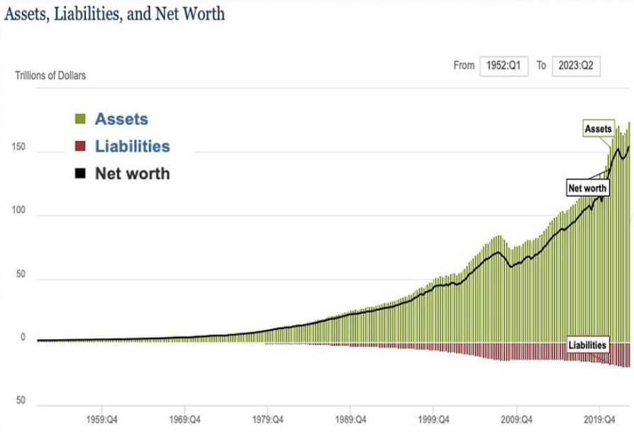 (Source: Board of governors of the federal reserve system, Americans households wealth is not 10 times bigger than debt)